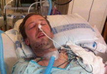 Dustin Theoharis, now 32, was taking a nap on February 11, 2012 when 16 bullets, fired by two police officers, broke his jaw, shoulder,...