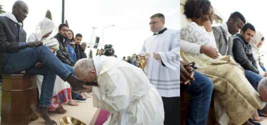 Pope Washes and Kisses Feet of both Genders, Muslim, Hindu and Orthodox Refugees